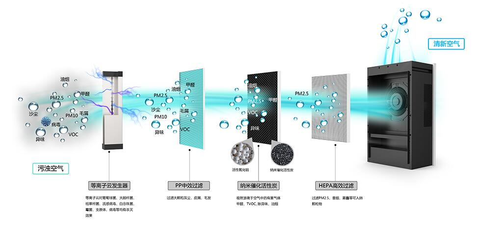 空氣消毒器廠家講等離子體利用特斯拉放電原理,形成等離子體空間凈化網(wǎng),直接電離病毒、細(xì)菌、螨蟲、甲醛、TVOC、流感病毒、傳染源等有毒有害物質(zhì),從根本上予以殺滅,同時釋放大量正負(fù)離子。采用高效HEPA復(fù)合濾網(wǎng),增加了除甲醛、PM2.5、TVOC的效果。